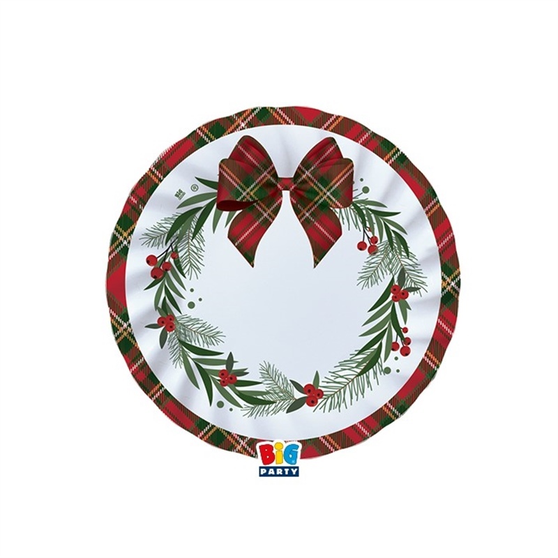 8 piatti piani in carta cm. 25 TARTAN HOLLY Big Party