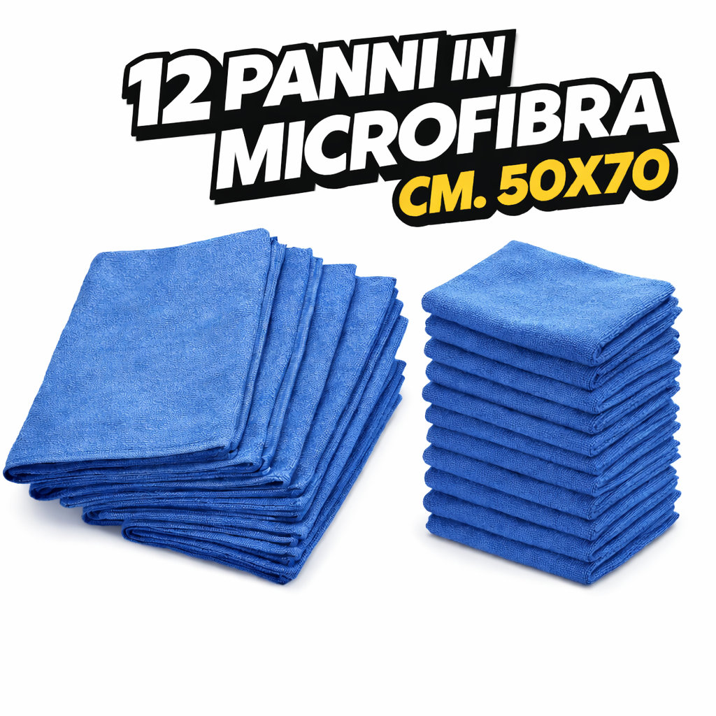 12 Maxi Panni Microfibra Iris Multiuso cm.50x70 Pulizia Casa Auto Moto Pavimenti
