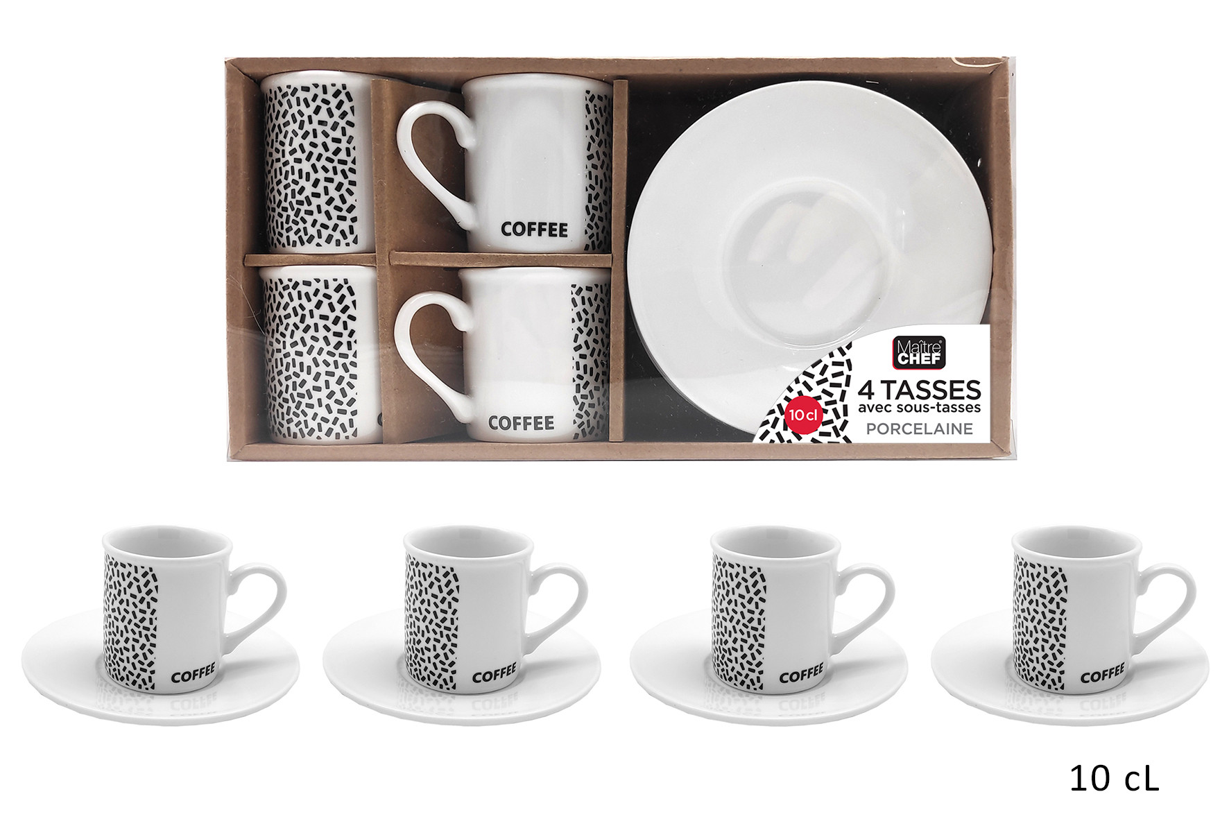 Set 4 tazzine da caffè in porcellana con piattino