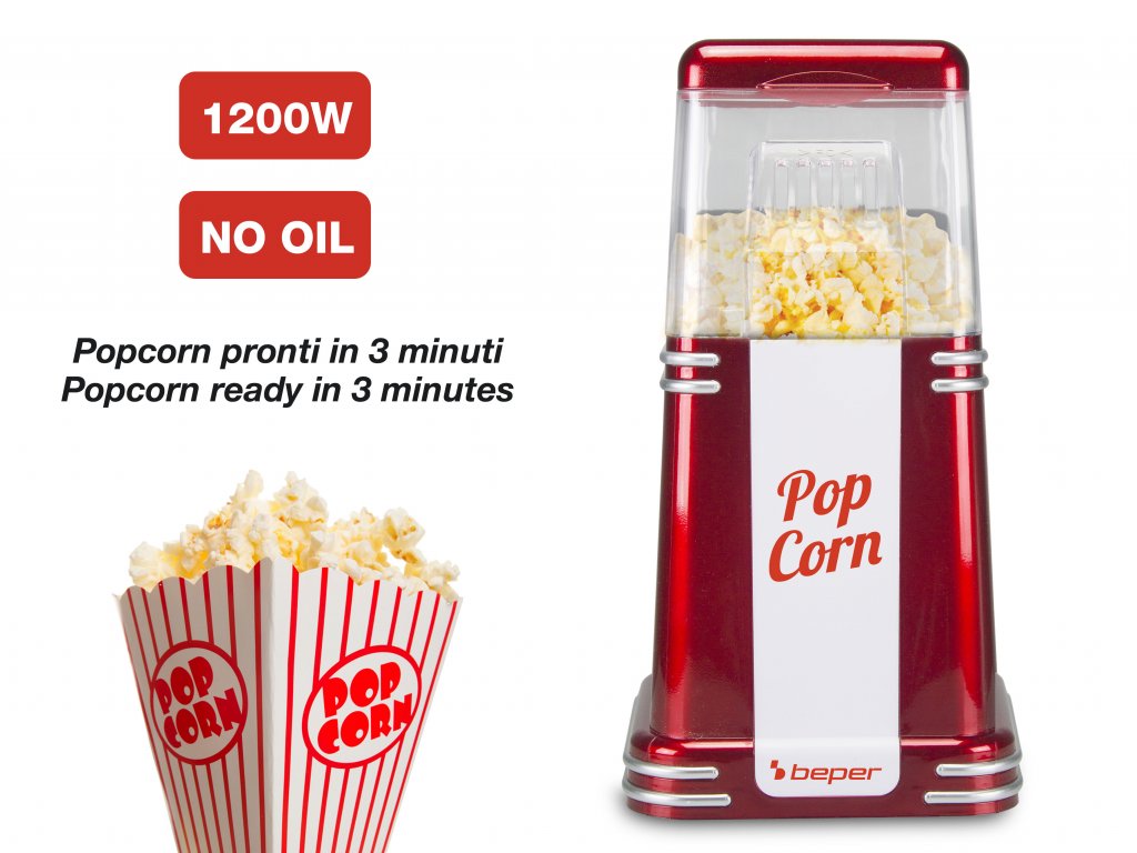 Macchina per Popcorn Pronti in 3 Minuti 1200 W Circolazione di Aria Calda Bepe