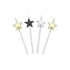 4 candeline Stelle Nere Oro e Argento cm. 13 Big Party Italia