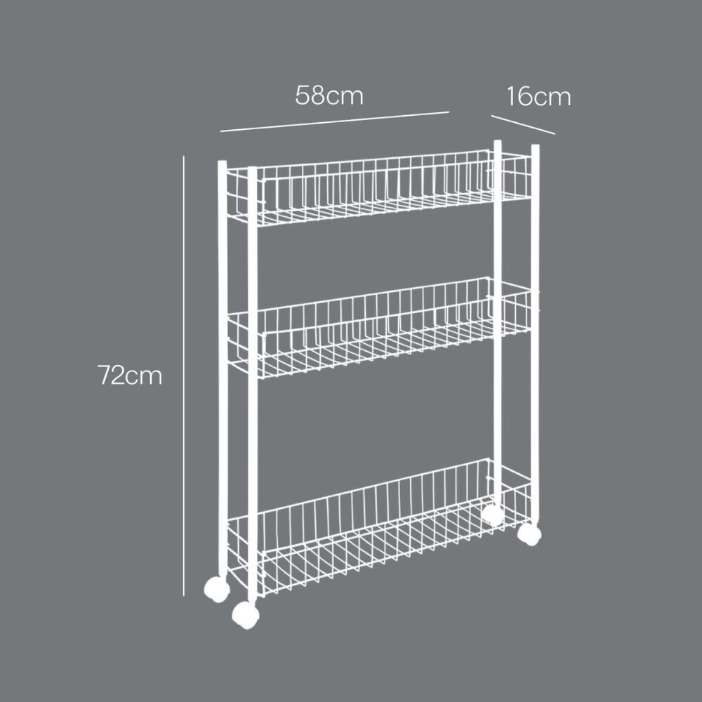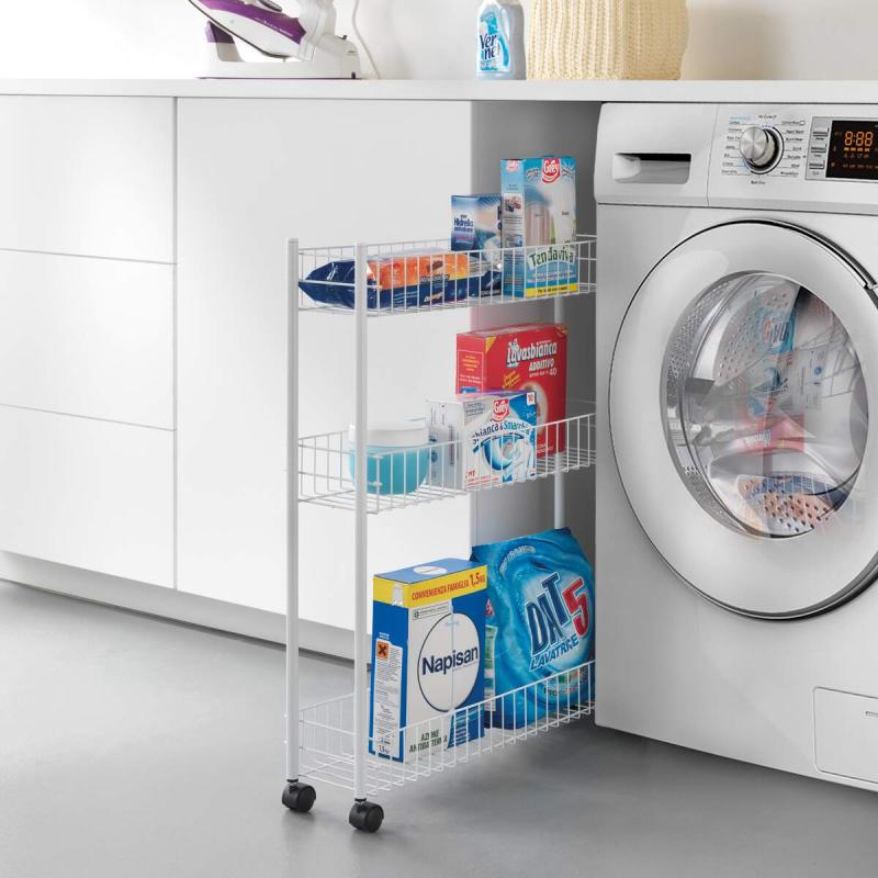 Carrello con Ruote Otello per Cucina Bagno 3 Piani Blu Tortora Rosso 30x40x70h