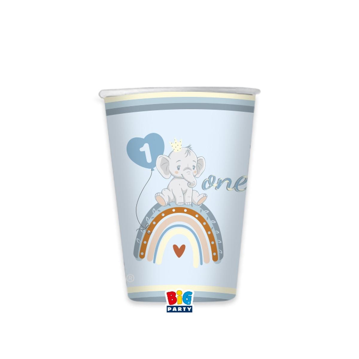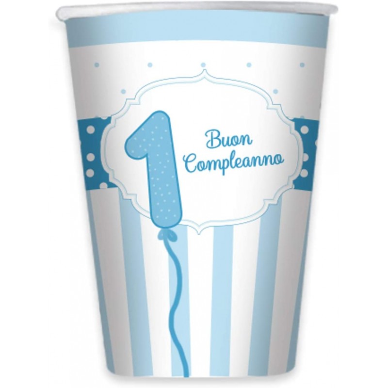 8 bicchieri 200cc Primo Compleanno celeste bimbo Big Party Italia