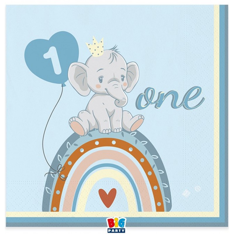 20 tovaglioli cm. 33x33 Boho Elefantino Celeste Big Party Italia