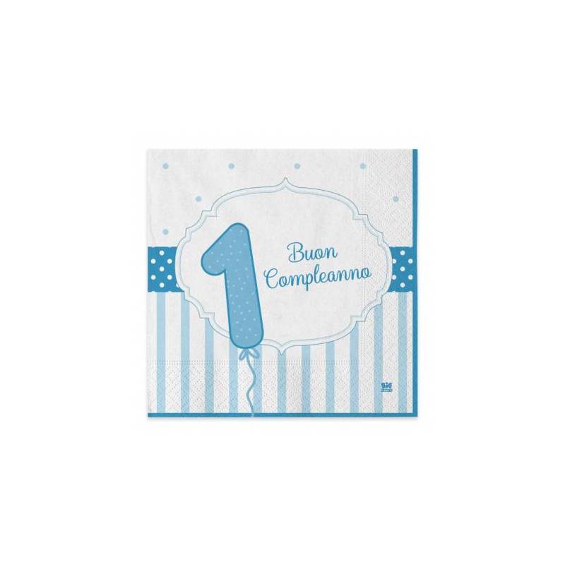 20 tovaglioli Buon Primo Compleanno celeste bimbo Big Party Italia