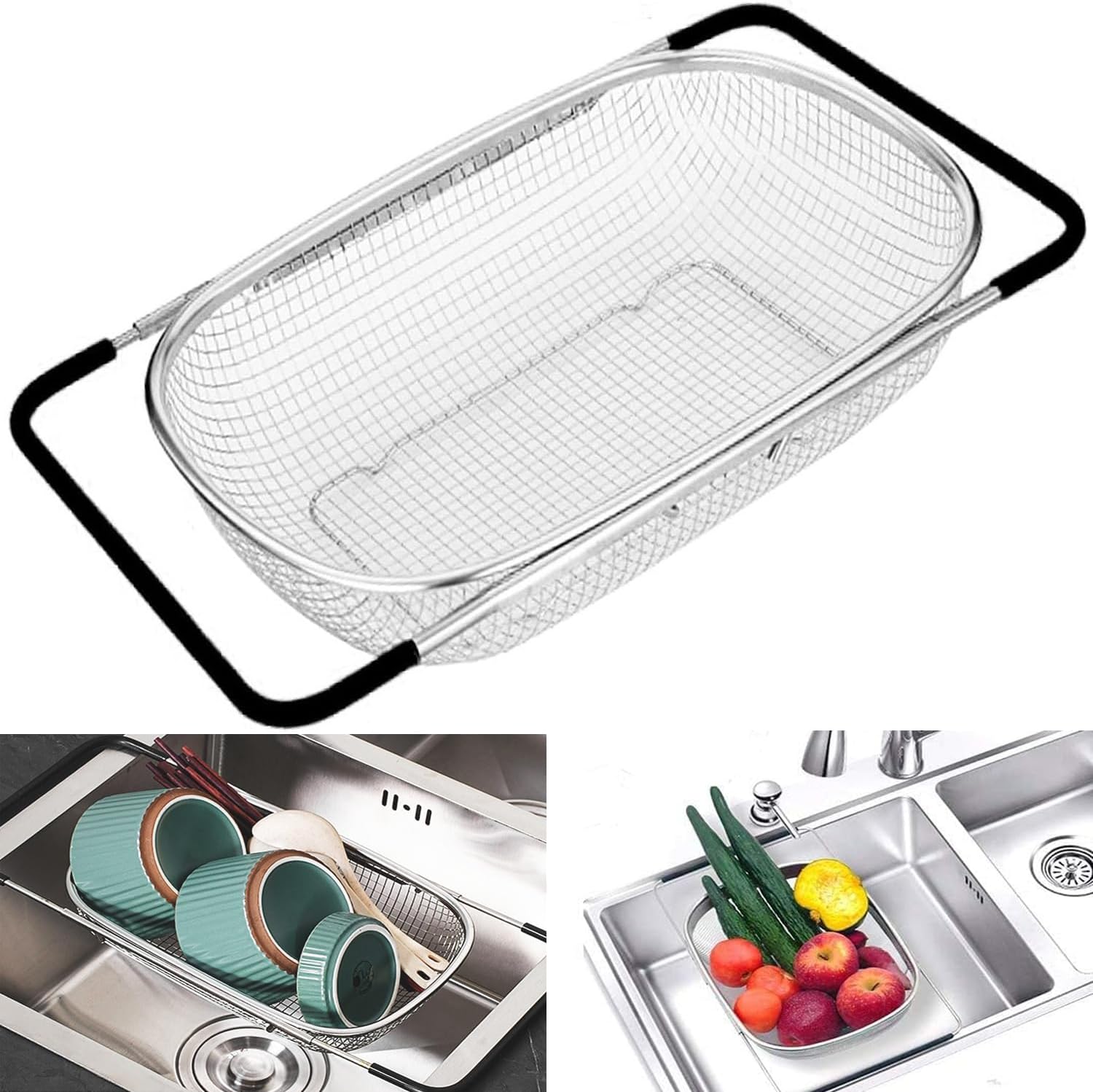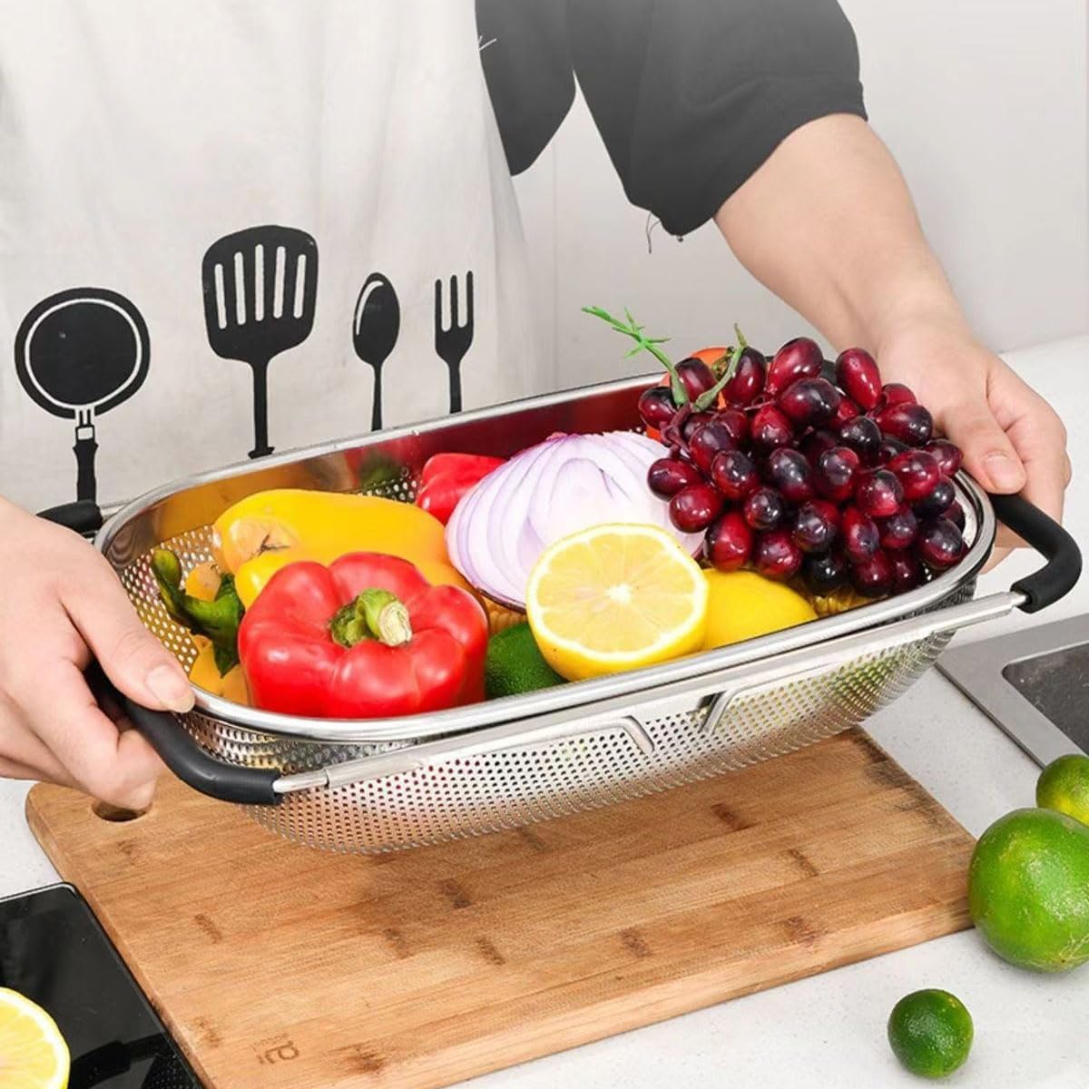 Scolapasta Lavello Estensibile Cucina Acciaio Inox 29/43 x 19 cm - Eva