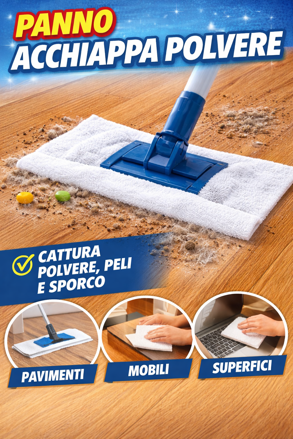 20 Panni Cattura Polvere Elettrostatici Asciutti Formato Maxi Cm.22x45 Gamex