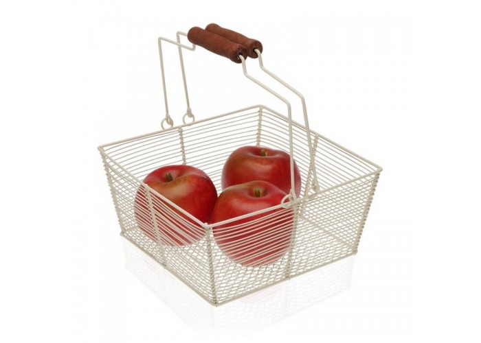 Cestino portafrutta in metallo bianco con manici in legno cm.22,5x10h