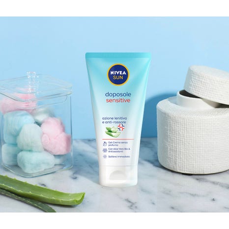 Per pelli sensibili – La crema doposole corpo senza profumo, oli minerali o parabeni e formulata con ingredienti attivi lenitivi è ideale per le pelli sensibili e tendenti ad allergie solari
