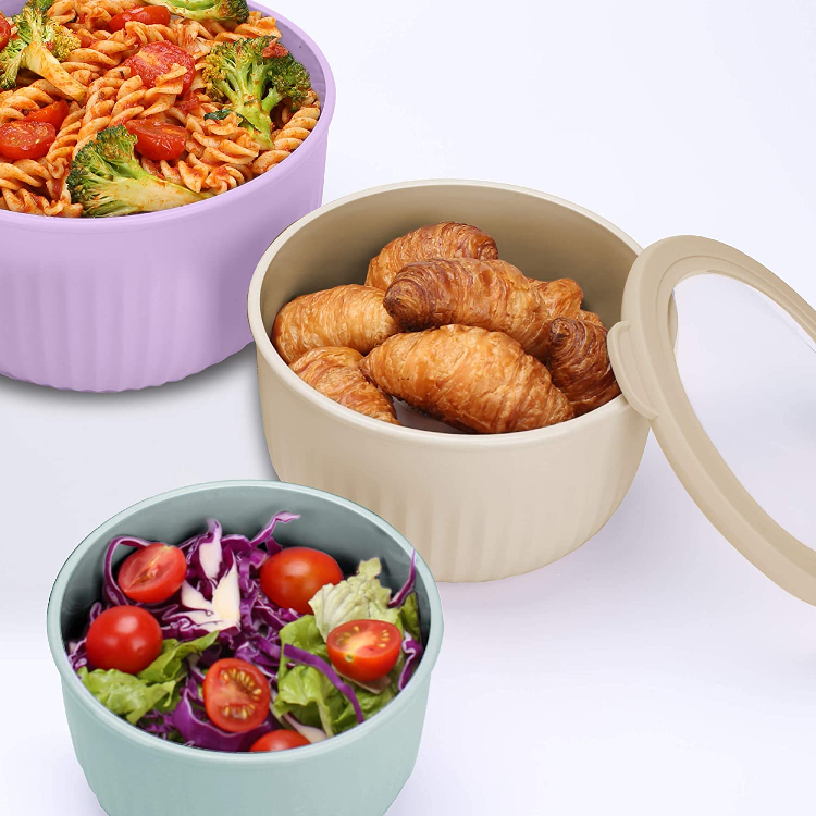 Set 3 contenitori ermetici ciotole multiuso con coperchio per frigo microonde freezer lunchbox, colori assortiti, bassi. Perfette per congelare, surgelare, riscaldare. Lavabili in lavastoviglie, puoi anche usarle come lunchbox o contenitori take away, l'interno liscio è perfetto per lavorazioni di creme e impasti, usalo anche per la preparazione delle tue ricette con fruste, per montare a neve.