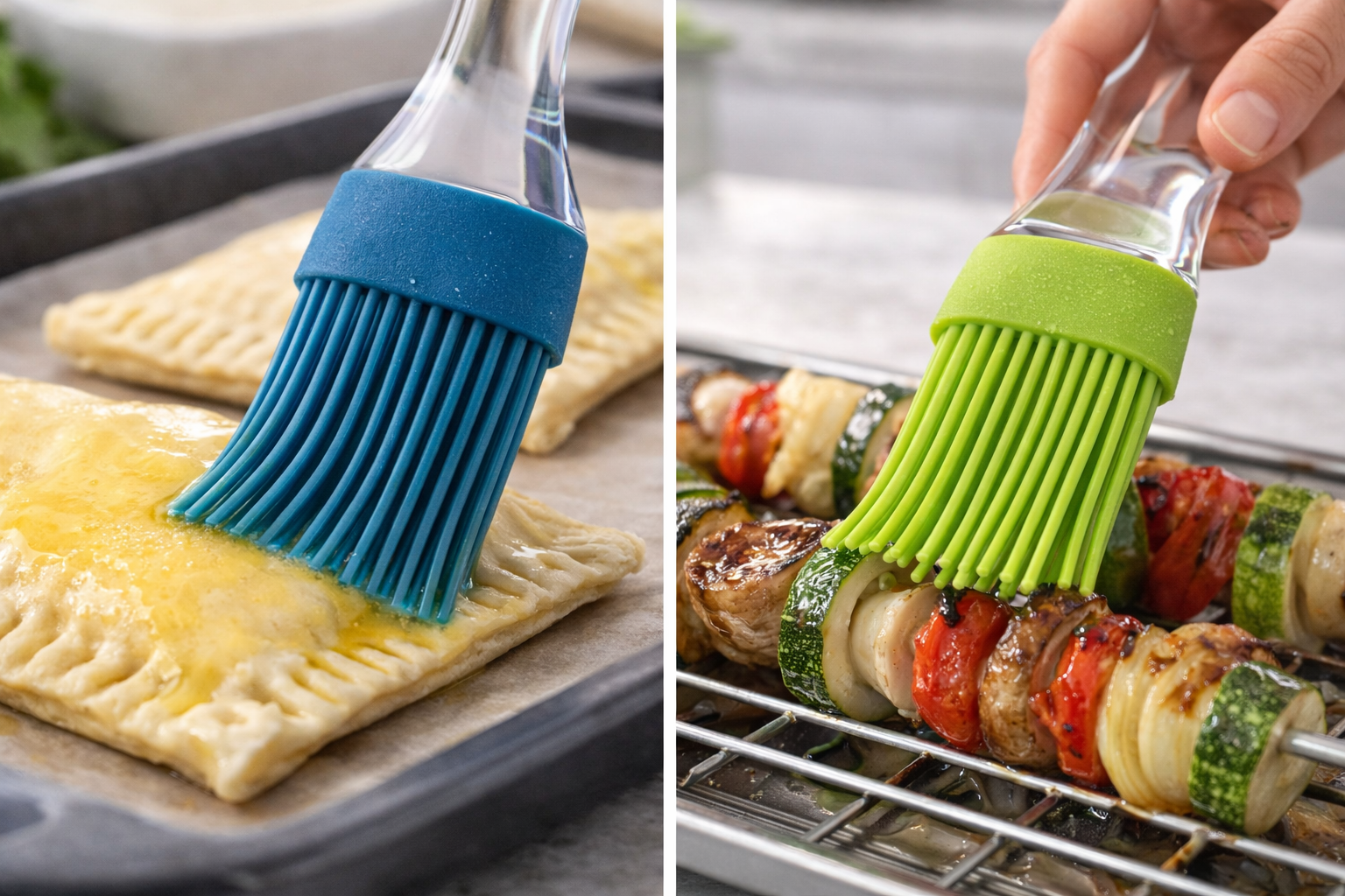 Il pennello da cucina in silicone è l’accessorio ideale per spennellare olio, burro, uovo, salse e marinature in modo uniforme e senza sprechi. Le setole flessibili in silicone alimentare garantiscono una distribuzione precisa dei liquidi, senza perdere peli e senza assorbire odori o sapori.
