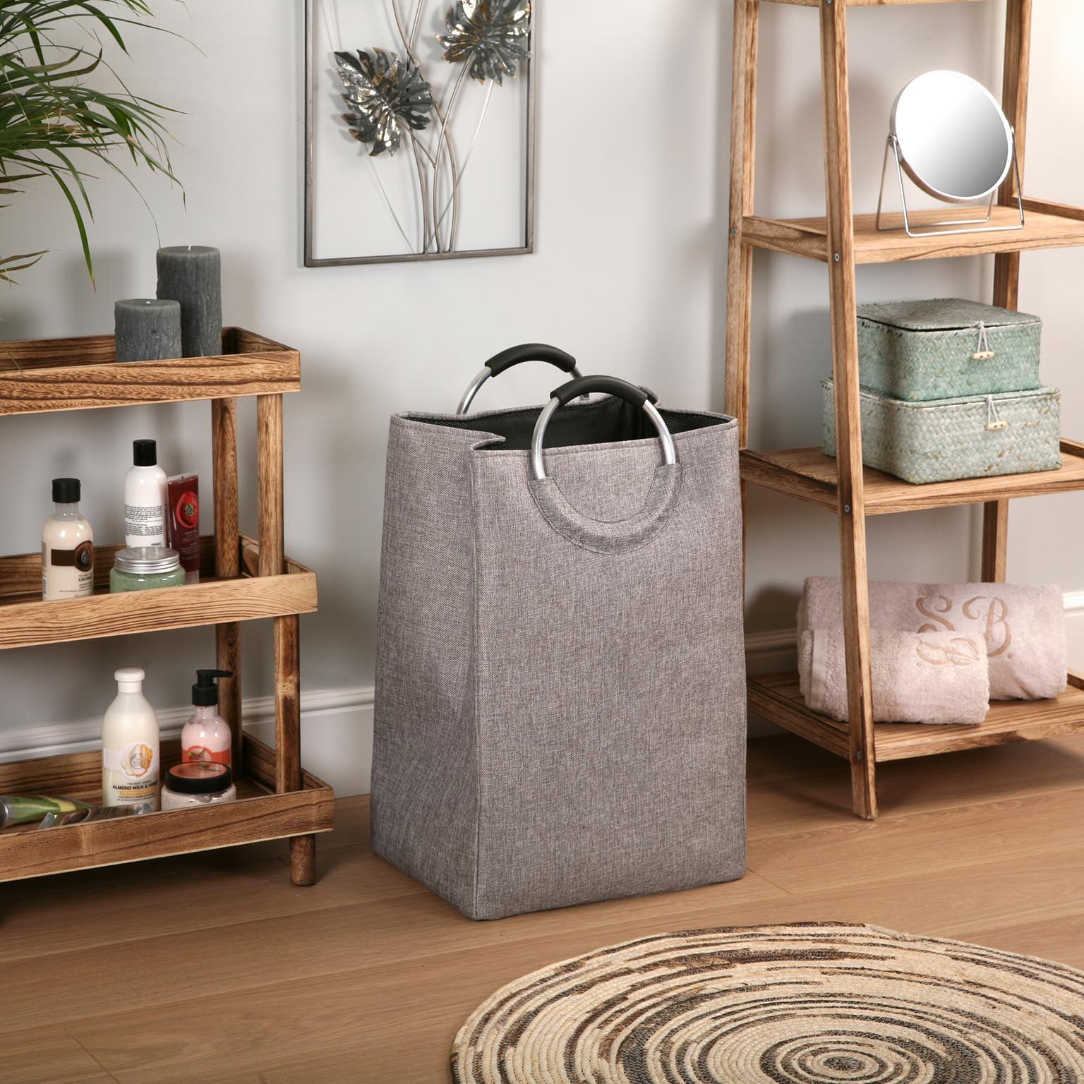 Portabiancheria con manico e ruote - Grigio