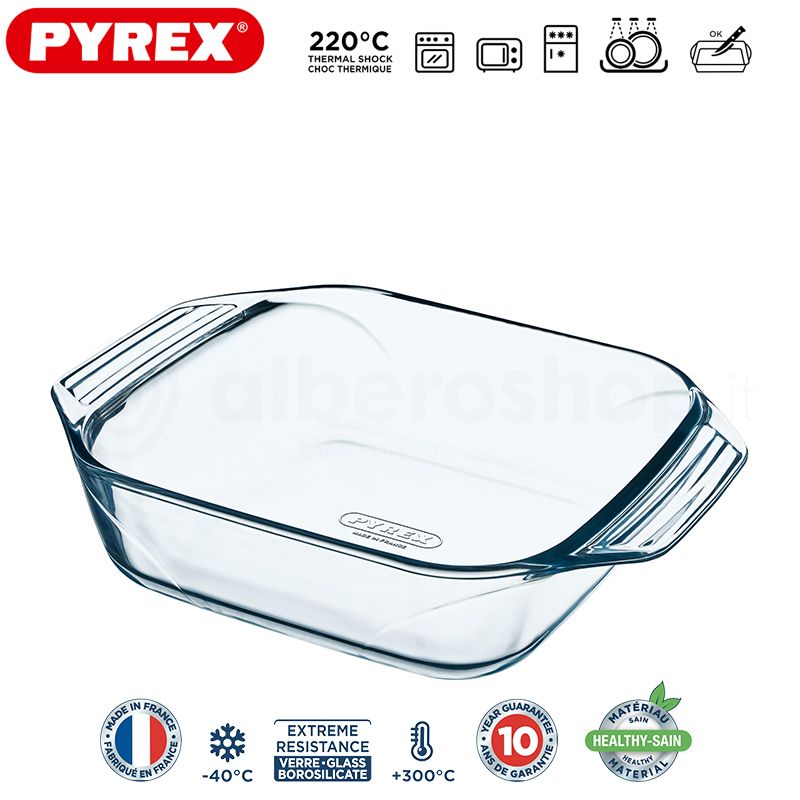 Teglia in vetro termo-resistente al freddo -20°C e al caldo +300°C. Grandi manici integrati per una presa agevole e sicura. Facile da trasportare. Adatta per microonde, forno e frigo-congelatore. Lavabile in lavastoviglie. Garantita 10 anni. Prodotta in Francia.