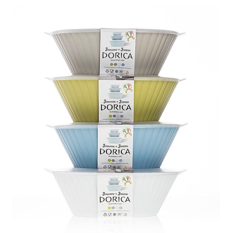 Set di 3 insalatiere in plastica con coperchio S/M/L linea Dorica