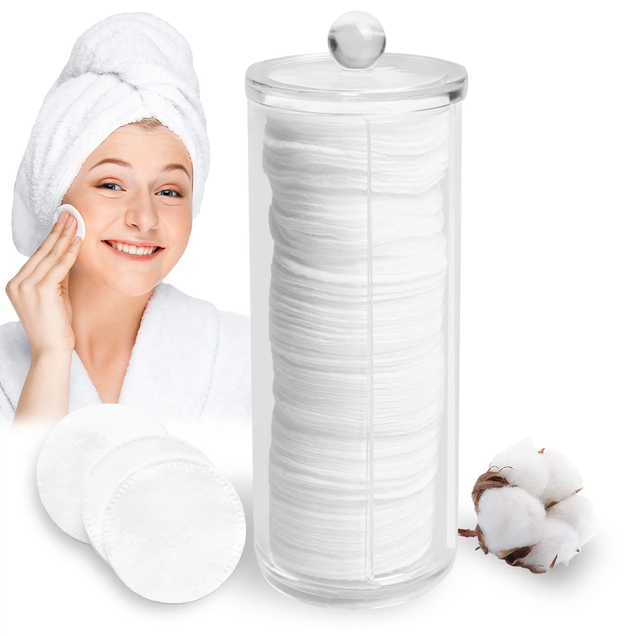 Porta cotton fioc in plastica trasparente con coperchio