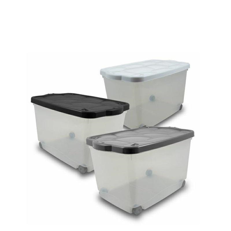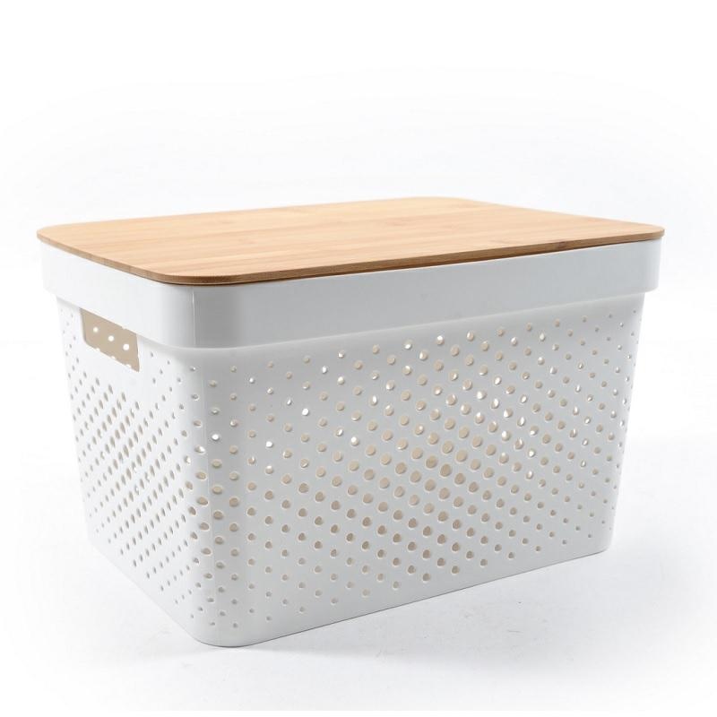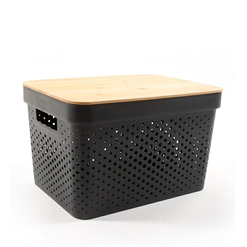 Cestino in plastica con coperchio in bamboo cm. 35,5x26,5x21,5
