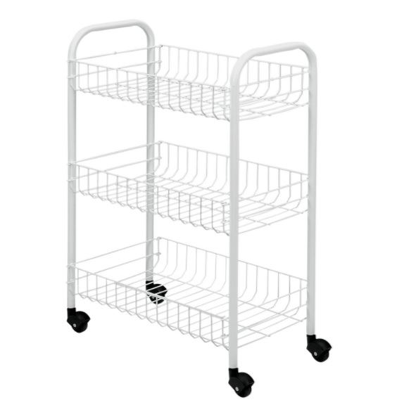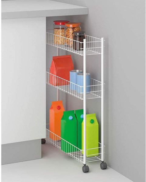 Carrello salvaspazio in legno con 3 ripiani cm. 50x15x79h - bianco
