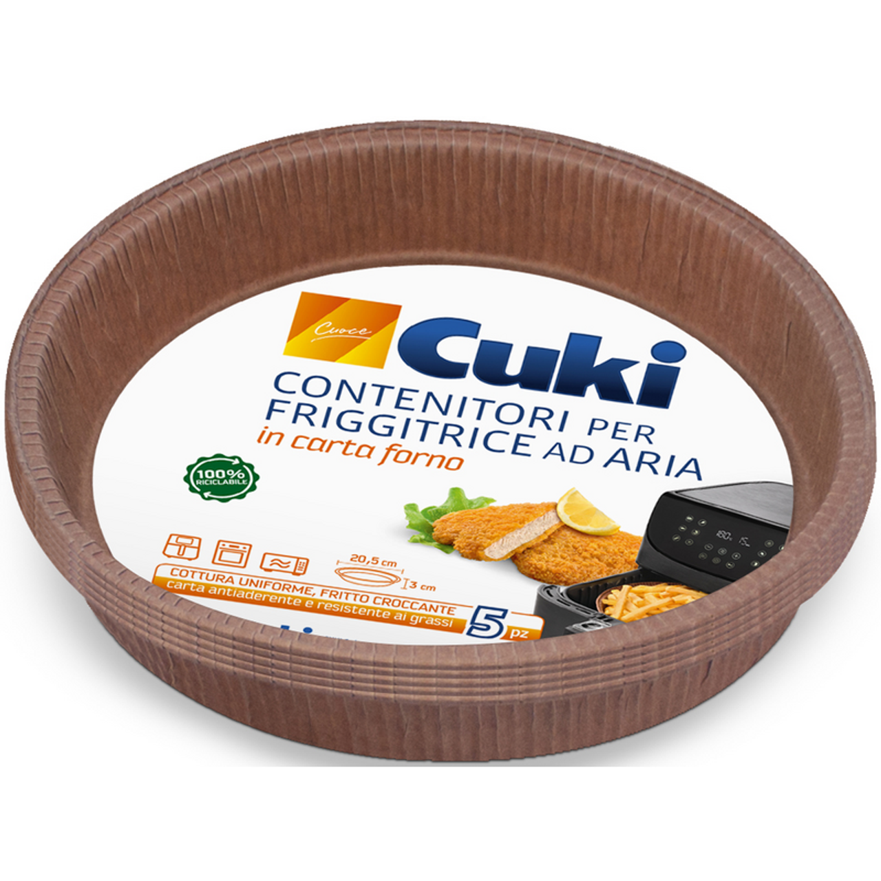 Cuki Contenitori per friggitrice ad aria in cartoncino antiaderente, anti-grasso e impermeabili, per una cottura uniforme e un fritto croccante, 1 confezione da 5 pezzi, Ø20.5 cm