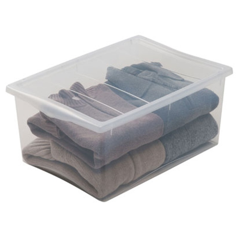 Belli e Forti contenitore multiuso con coperchio L. Scatola multiuso trasparente in plastica salvaspazio con coperchio, ideale per organizzare gli spazi in casa, in camera o in ufficio.