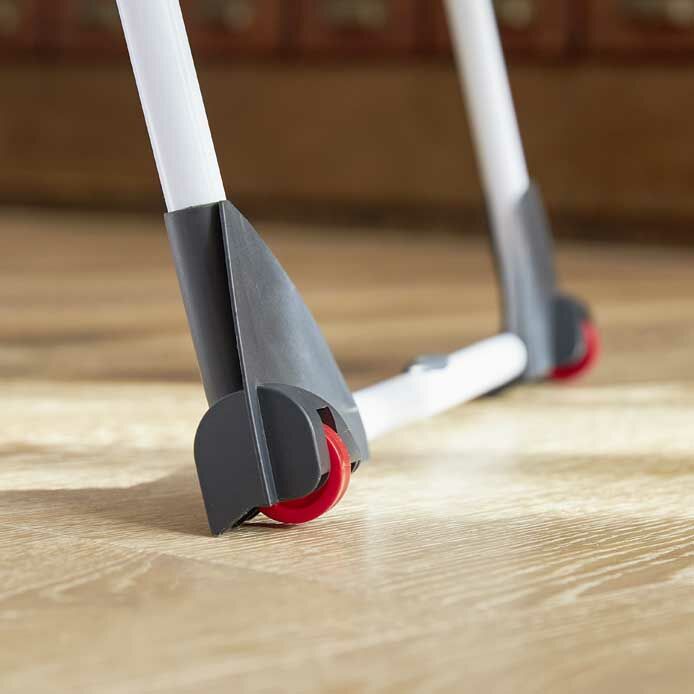 Lo stendibiancheria di grandi dimensioni è dotato di due pratiche ruote che permettono di spostarlo anche quando carico, dove si preferisce, dentro o fuori casa. Dopo l’uso, Vileda Infinity Flex Plus è semplice da chiudere e riporre in sicurezza, grazie al blocco ali che impedisce eventuali aperture accidentali.