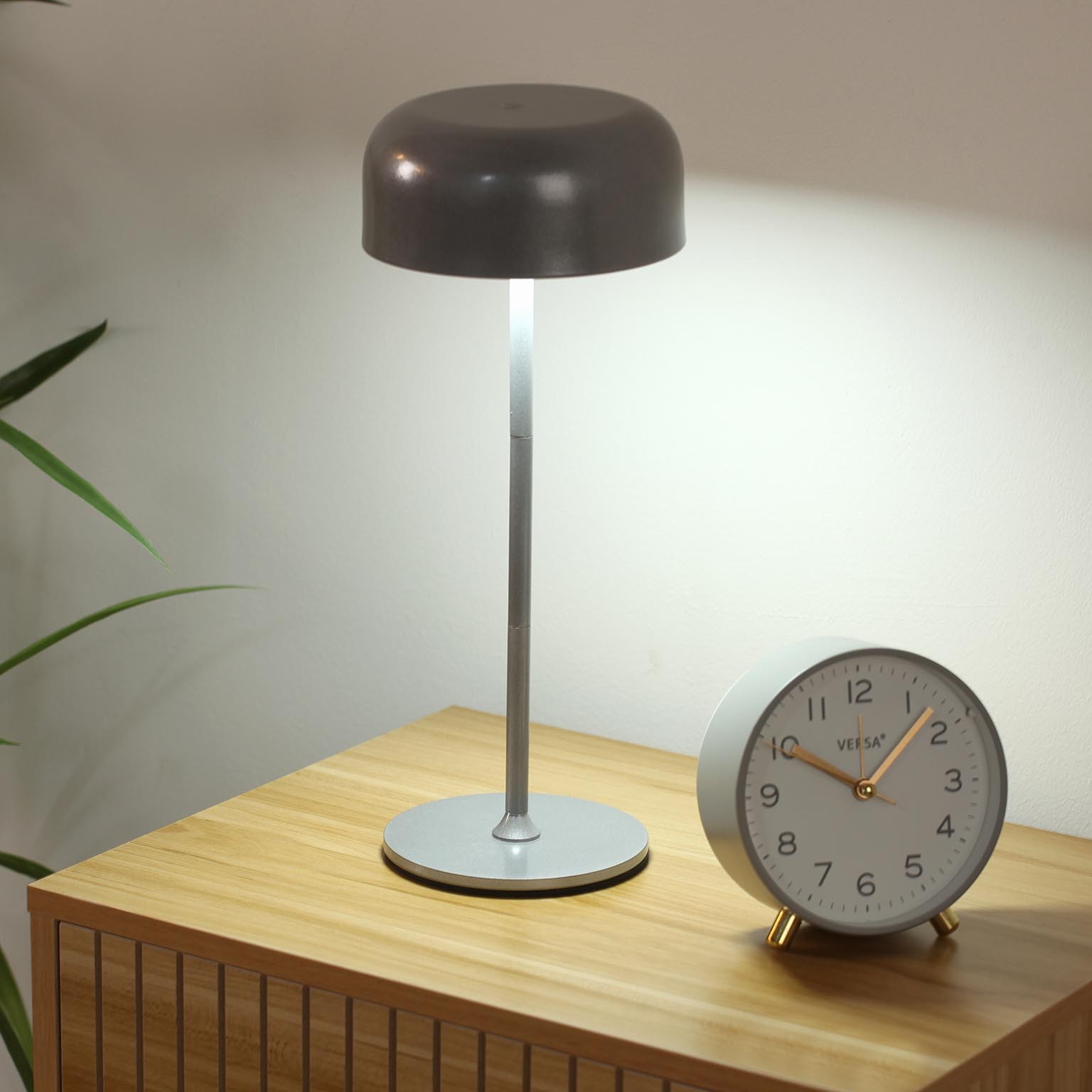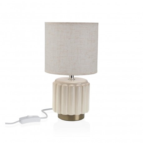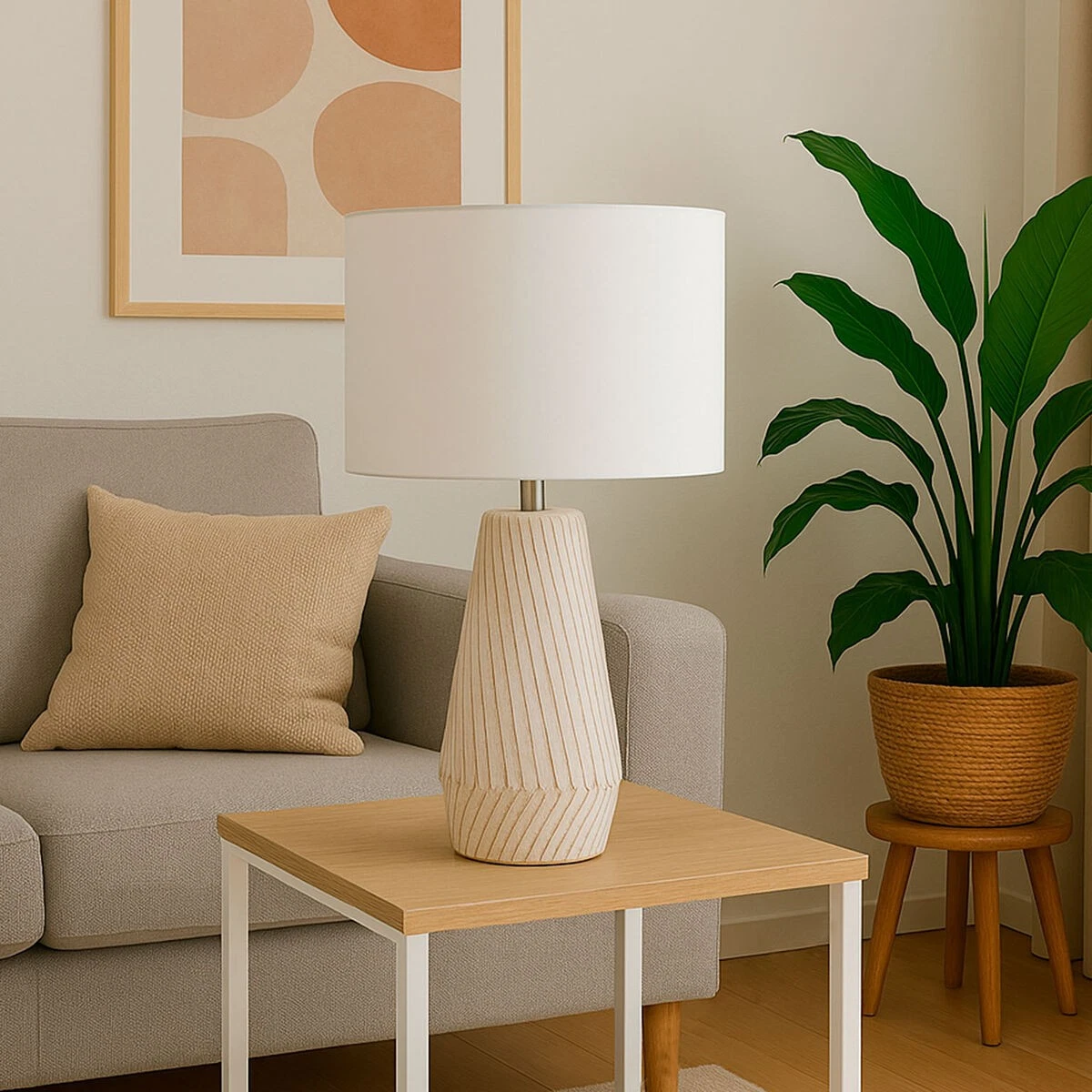 Lampada da tavolo argento con paralume in tessuto bianco cm. 47h