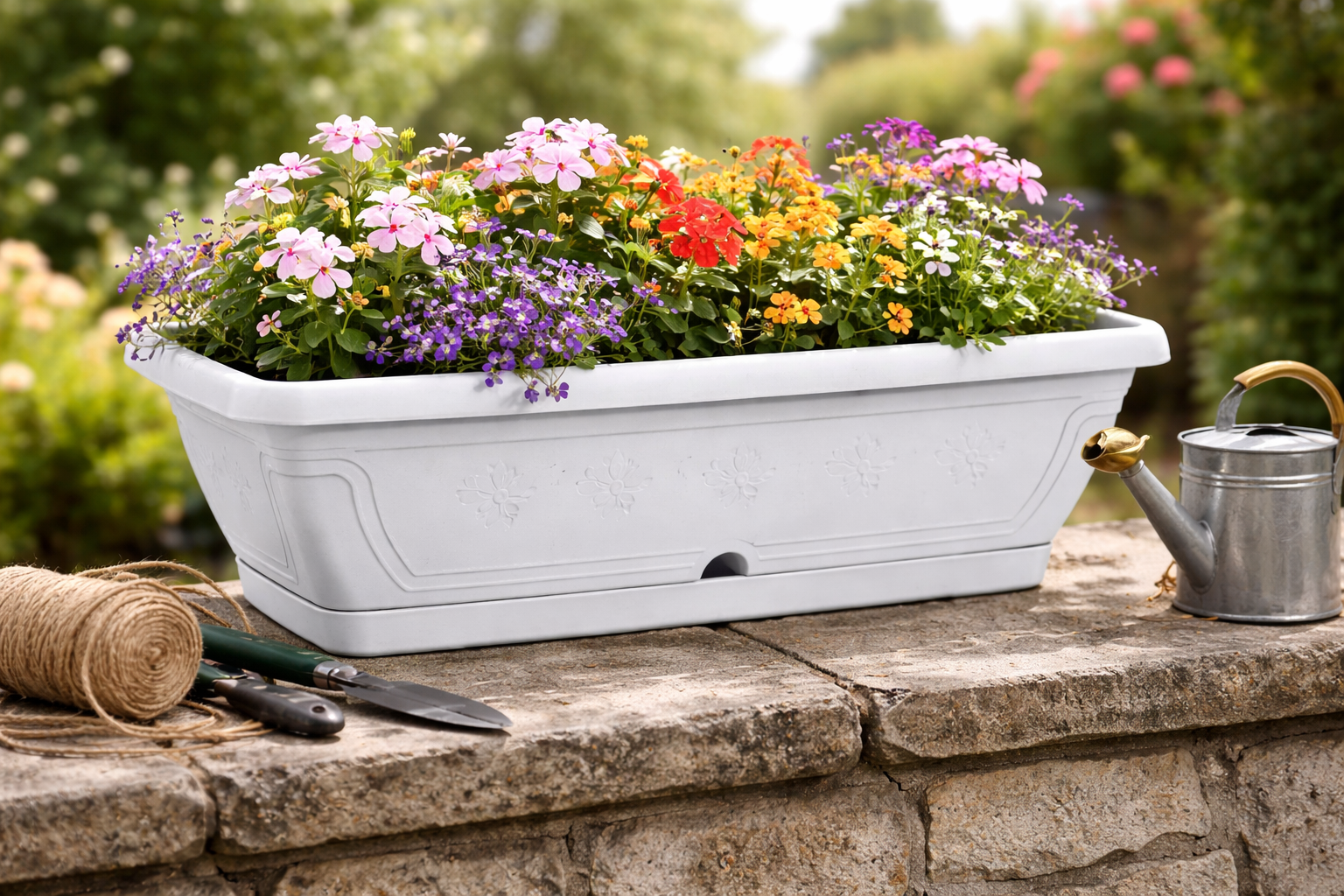 Vaso da Terra Fioriera in Plastica Rettangolare Anthea cm. 80 - Bianco