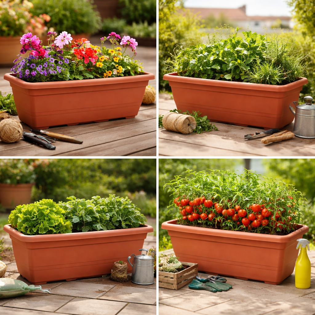 Fioriera rettangolare dal design semplice e moderno, ideale per arredare e coltivare piante, fiori o ortaggi in modo pratico ed elegante. Realizzata in plastica resistente, è leggera ma robusta, perfetta per uso interno ed esterno. Il colore bianco neutro si adatta facilmente a qualsiasi ambiente: balconi, terrazze, giardini, davanzali o spazi indoor. La forma rettangolare consente di ottimizzare lo spazio ed è ideale per creare composizioni ordinate e funzionali.
