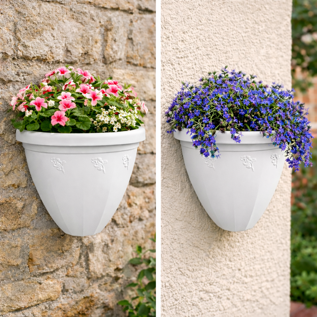 Vaso Gerla da Muro 30 cm in Plastica Terracotta – Fioriera da Appendere Parete