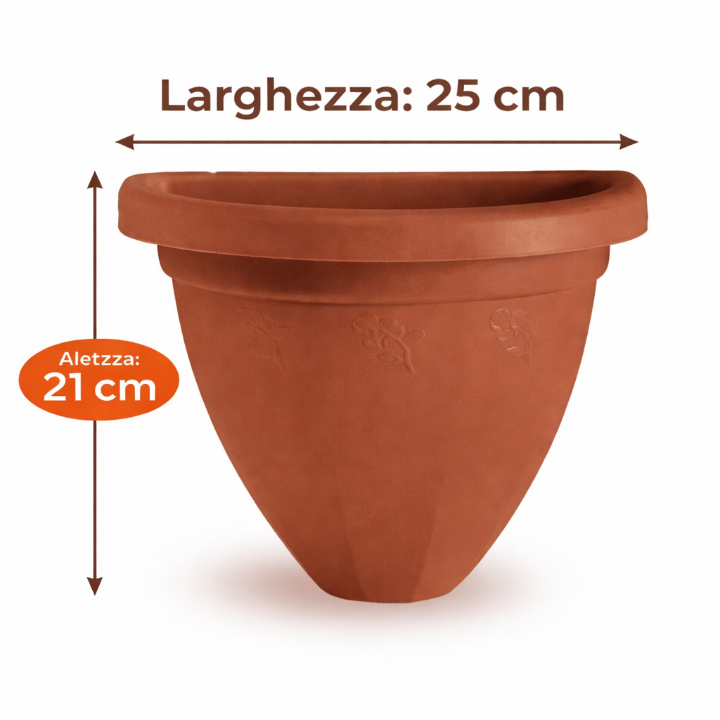 Vaso Gerla da Muro 30 cm in Plastica Terracotta – Fioriera da Appendere Parete