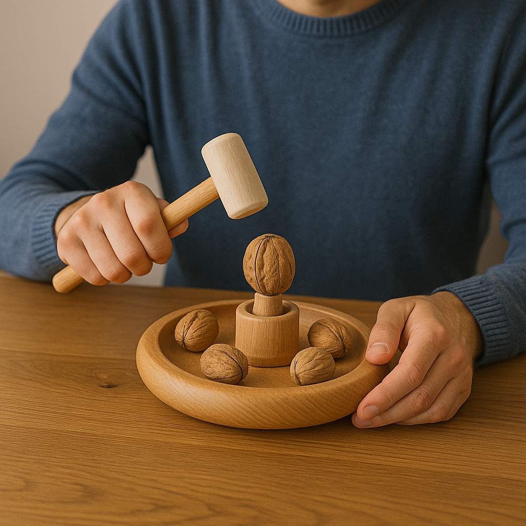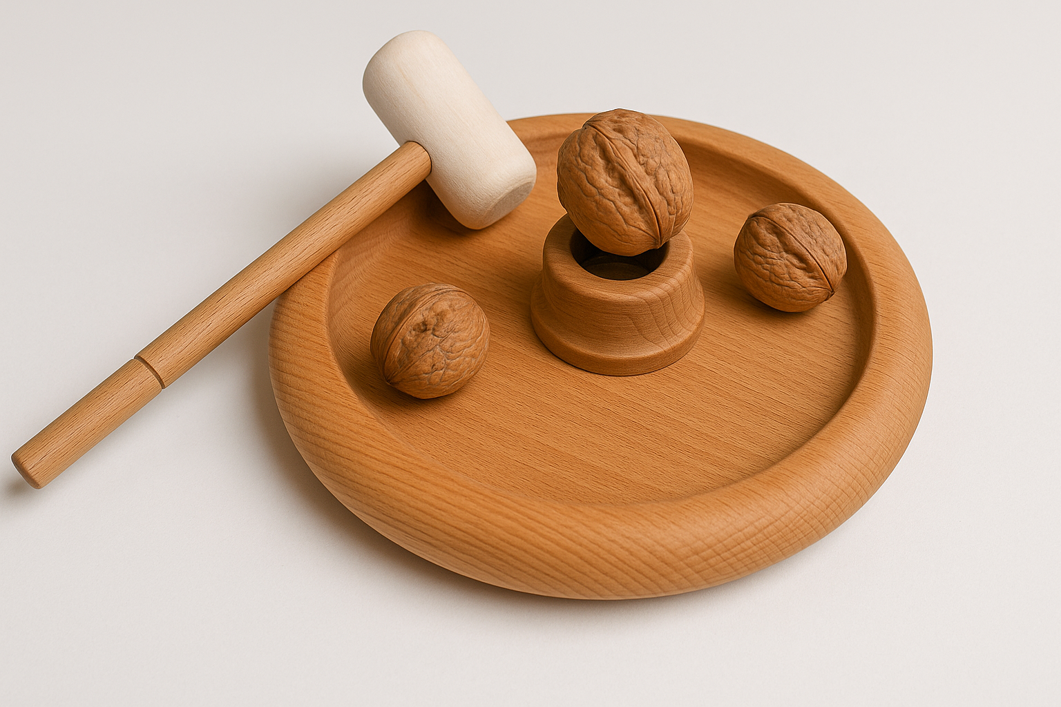 Vassoio in legno con martello schiaccianoci