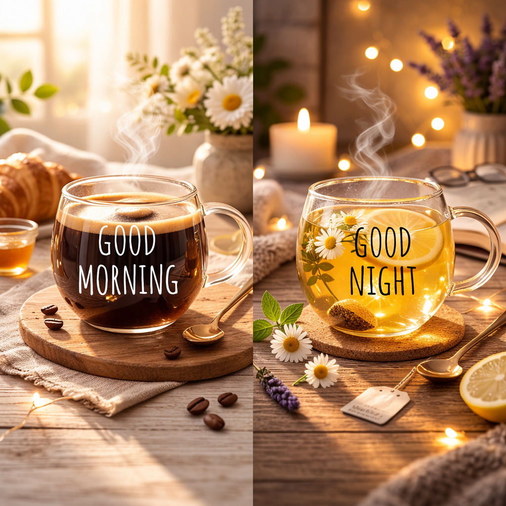 Tazza in vetro Borosilicato 400 ml Good Morning / Good Night - assortite
