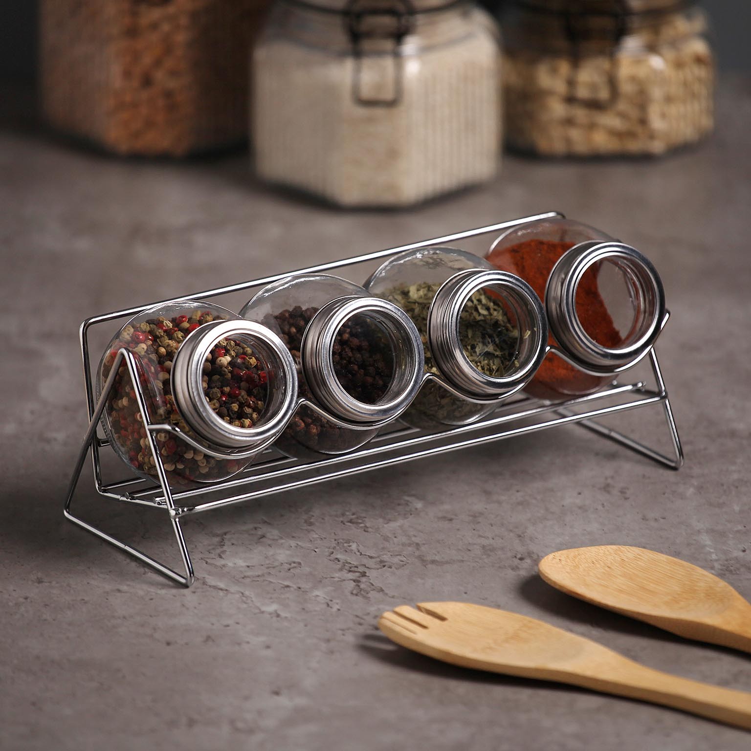 Portaspezie con Supporto in Metallo 4 posti