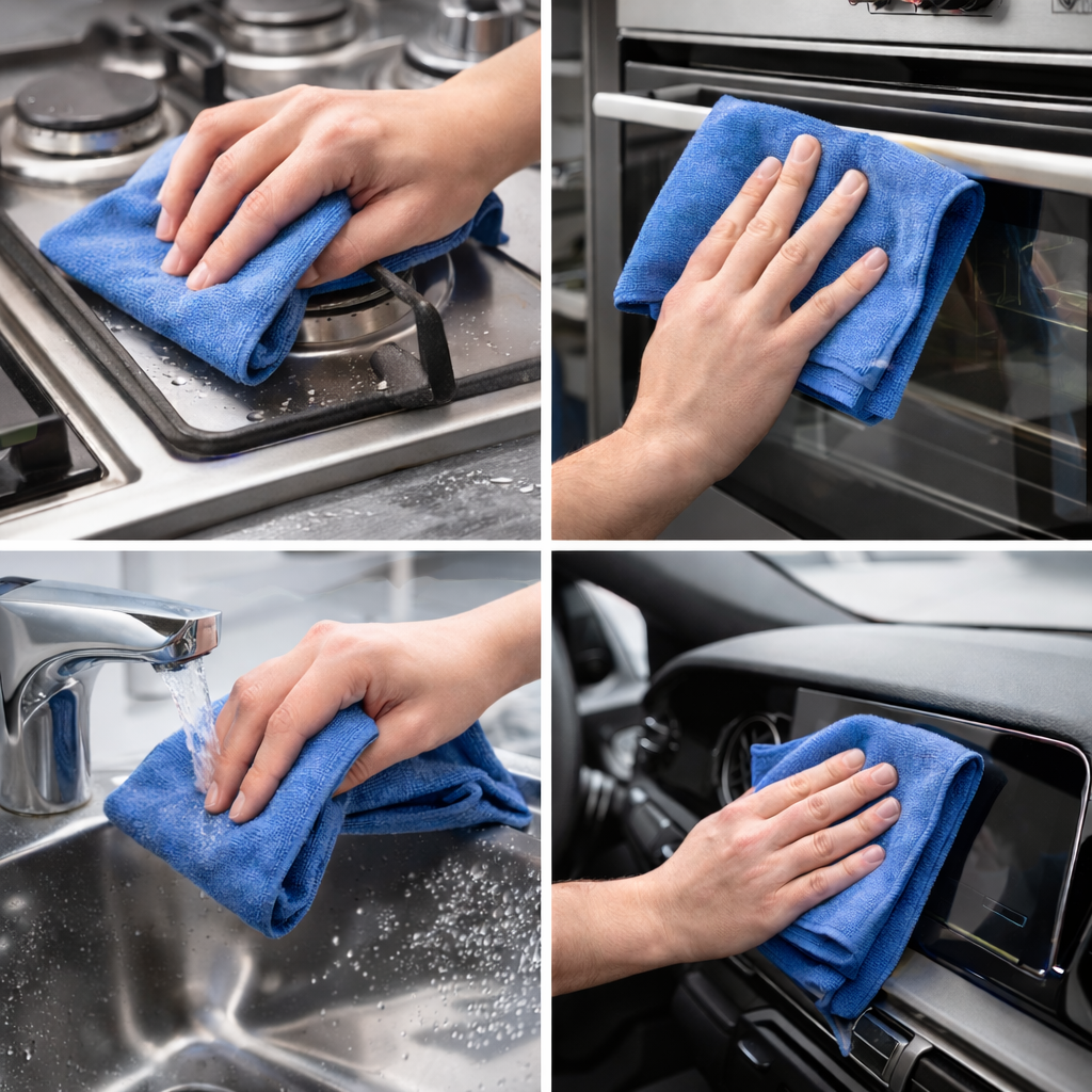 Set da 12 panni in microfibra professionali ideali per la pulizia di casa, auto e superfici delicate.