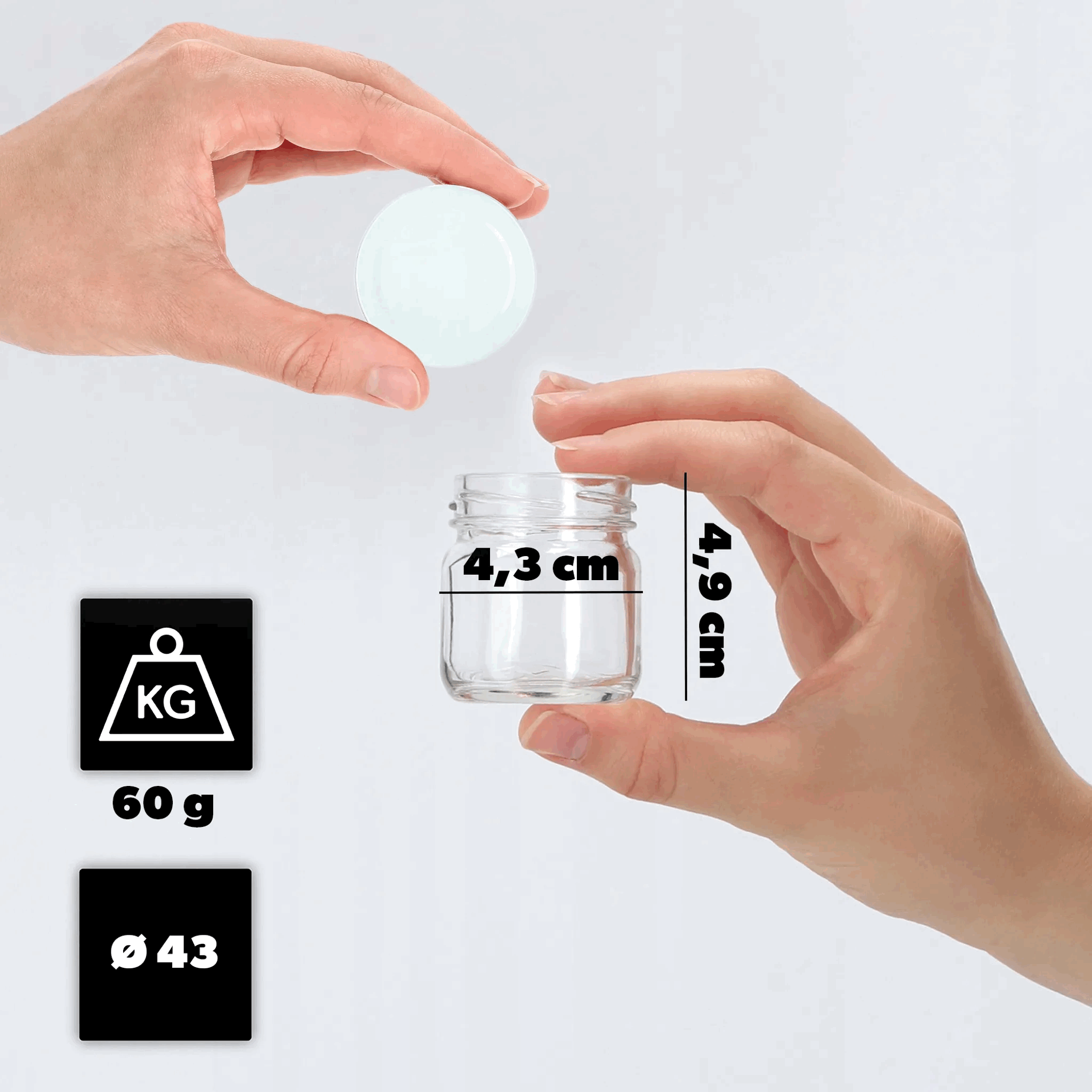 35 barattoli in vetro 106 ml + tappi bianchi