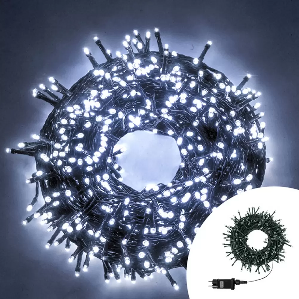 300 led Bianco caldo per interno ed esterno con cavo verde mt. 12