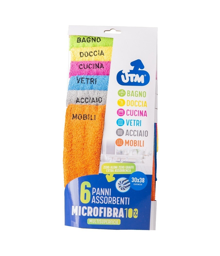 Pratico set composto da 6 panni in microfibra di alta qualità, ideali per una pulizia efficace e senza aloni in tutta la casa.
