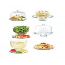 Alzata multifunzionale con un'utilissima cupola in vetro. Base circolare con 4 scomparti laterali ed uno centrale. Cupola che all'occorrenza può trasformarsi in ampia ciotola centrale o supreme bowl. Lavabile in lavastoviglie.