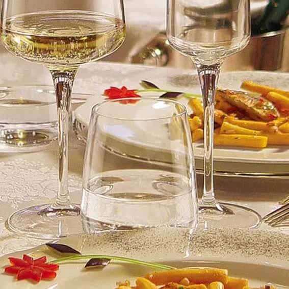 Questo modello, che ha una forma delicatamente squadrata sul fondo, è stato studiato per il servizio di acqua naturale, frizzante e tonica.