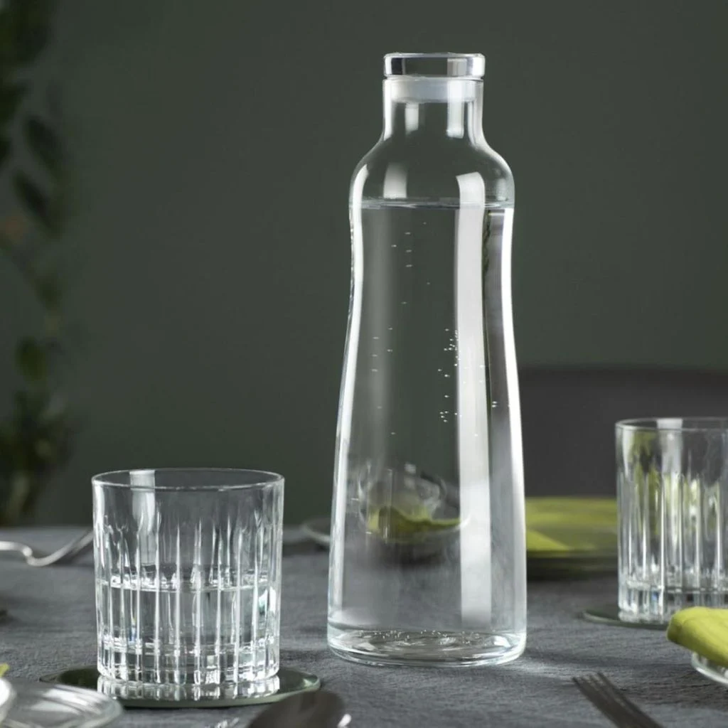 La bottiglia di Eco è ideale per uso quotidiano e consente di creare la propria mise-en-place elegante, evitando barattoli scomodi e bottiglie di plastica che inquinano l'ambiente. Poiché è molto più leggero delle bottiglie ordinarie, è ideale per acqua, succo di frutta, latte e tè. E' fatta vetro di cristallo senza piombo LUXION®che è facile da pulire in una lavastoviglie.
