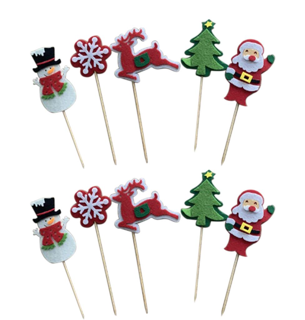 10 mini topper natalizi stecchini decorativi per dolci o salati