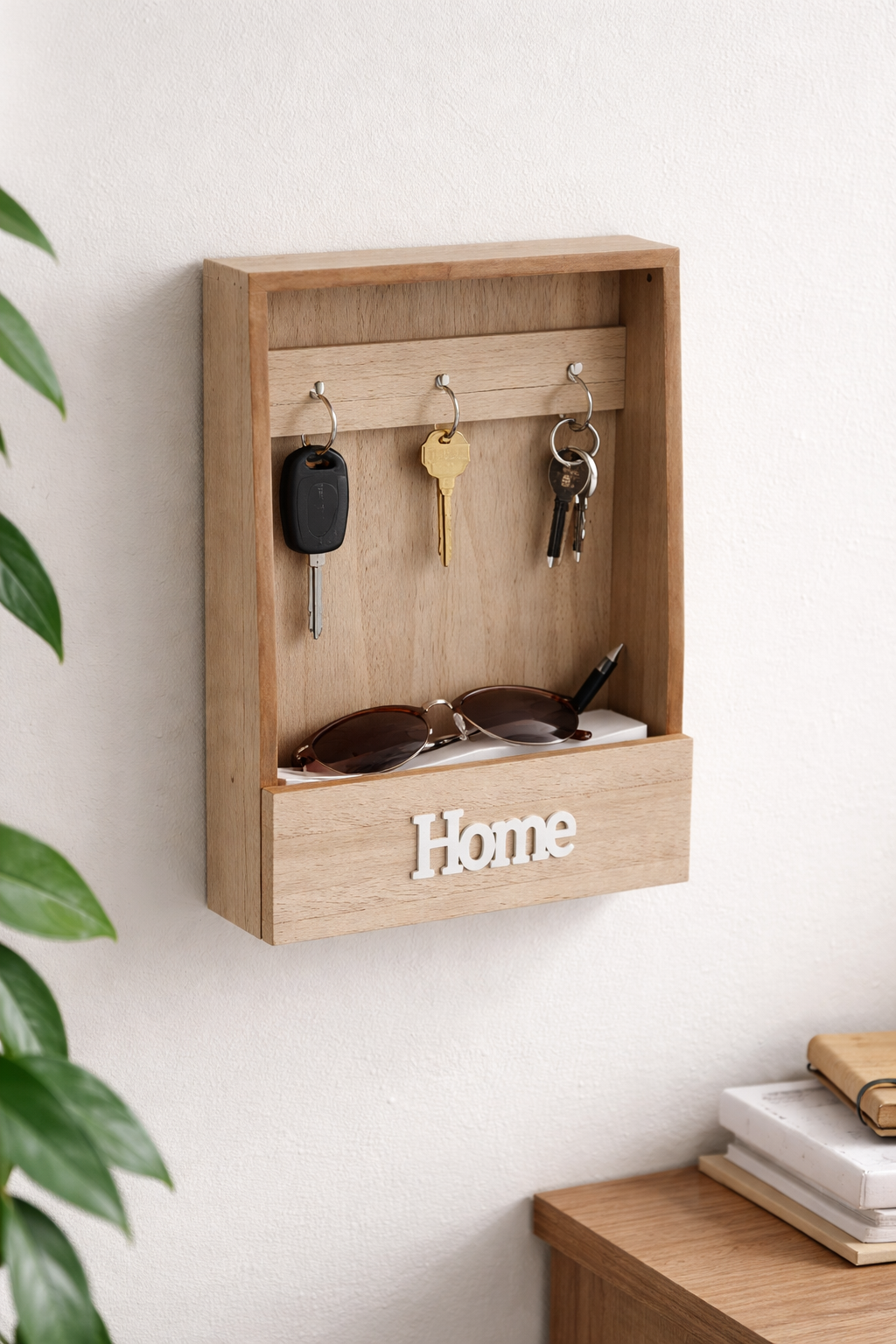 Aggiungi stile e praticità al tuo ingresso con questo elegante portachiavi da parete in legno. Dal design semplice e moderno, è perfetto per tenere sempre in ordine chiavi e piccoli oggetti quotidiani.