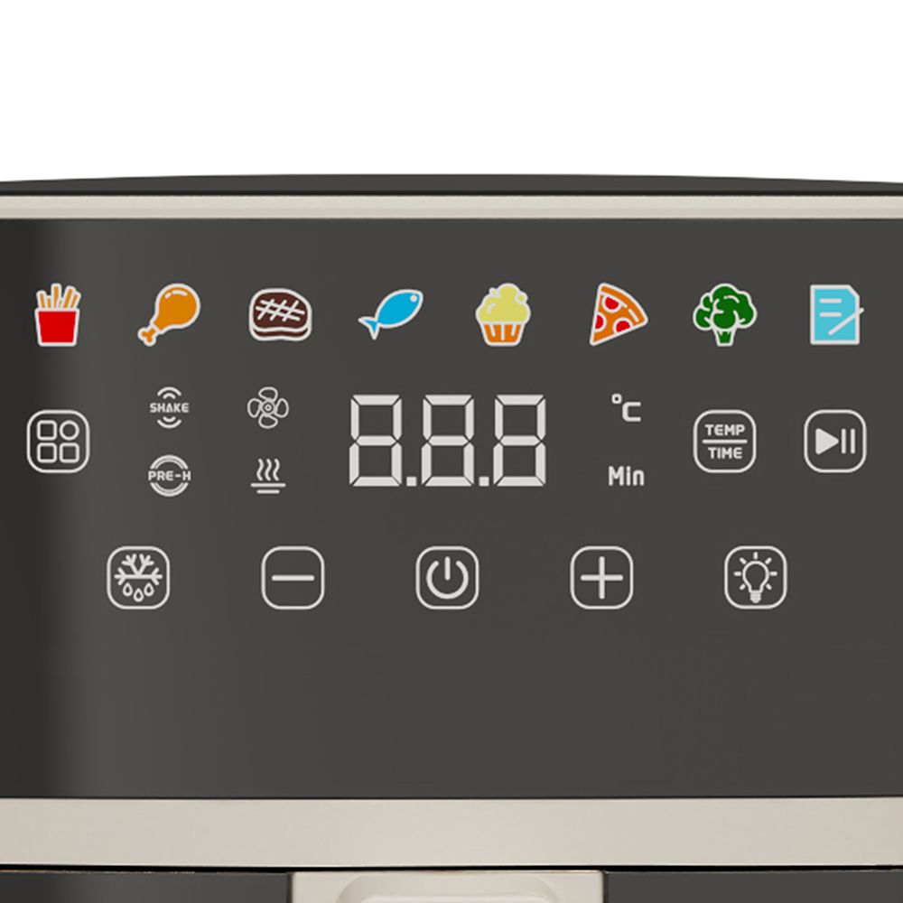 La friggitrice ad aria da 6 litri Champagne è la scelta ideale per chi desidera unire performance elevate e stile elegante in cucina. Dotata di doppia resistenza, superiore e inferiore, assicura una cottura più uniforme e rapida, capace di dorare perfettamente ogni alimento, riducendo drasticamente l’uso di olio. È perfetta per friggere, grigliare, arrostire e cuocere al forno, rendendo ogni ricetta più leggera senza rinunciare al gusto. Grazie alla capienza da 6 litri, questa friggitrice è ideale per preparare porzioni abbondanti in una sola volta, perfetta per famiglie o per chi cucina spesso per più persone. Il cestello antiaderente è ampio e facile da pulire, mentre la finestra trasparente con illuminazione interna permette di monitorare la cottura in ogni momento senza dover aprire il cassetto, evitando dispersione di calore. Il pannello digitale intuitivo consente di accedere a 8 programmi preimpostati, con temperatura regolabile tra 80°C e 200°C e timer fino a 60 minuti, per una gestione precisa e automatizzata. Dal design contemporaneo e dalla finitura color Champagne, questa friggitrice diventa anche un complemento d’arredo da esibire sul piano cucina. Affidabile e potente grazie ai suoi 1700W, è dotata di spegnimento automatico, interruttore di sicurezza e protezione da surriscaldamento, per cucinare in totale tranquillità. La friggitrice ad aria 6 L è disponibile anche nella colorazione Carta da Zucchero.