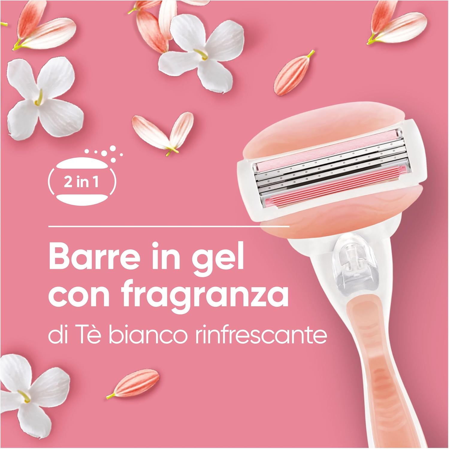 Il Design anatomico testina oscillante si adatta ai contorni del tuo corpo e non dovrai manovrare maldestramente il tuo rasoio. Protezione per la pelle le barre con gel del rasoio rilasciano una ricca schiuma di burro per il corpo al tè bianco, proteggendo la pelle contro graffi, tagli e irritazioni.