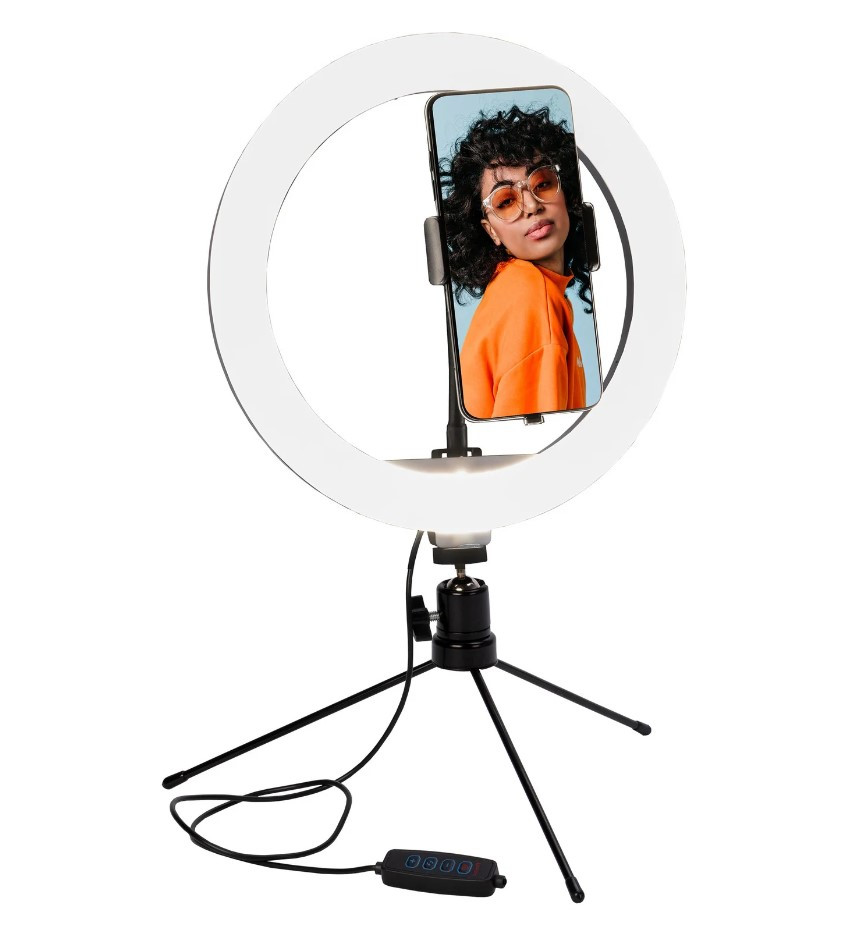 Lampada ad anello selfie ring con tre piedi cm. 26 30 led