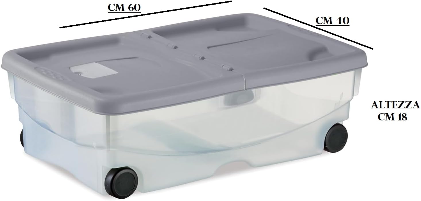 Dimensioni: Ogni contenitore misura 60x40x18 cm, una dimensione ideale per adattarsi sotto il letto o in armadi.