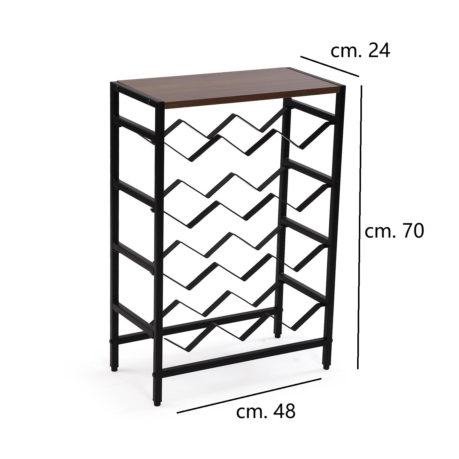 Questa cantinetta porta bottiglie, realizzata in metallo e legno, offre un elegante spazio per 12 bottiglie di vino, combinando funzionalità e design. Con una capacità totale di 12 posti, è ideale per gli amanti del vino che desiderano esporre le proprie etichette preferite con stile. La sua struttura robusta garantisce stabilità, mentre il design raffinato si integra perfettamente in qualsiasi ambiente.