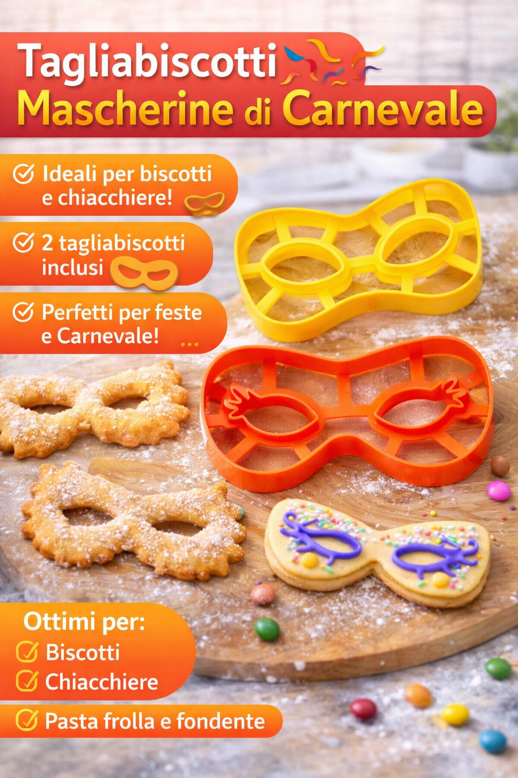 Forme a mascherina di Carnevale – Ideali per feste, eventi e buffet a tema