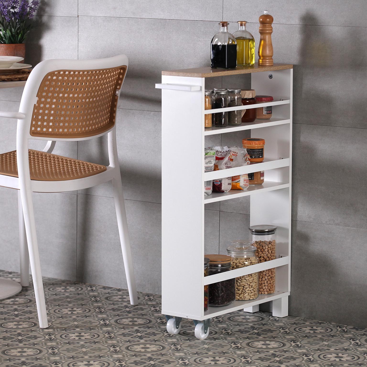 Carrello salvaspazio in legno con 3 ripiani cm. 50x15x79h - bianco
