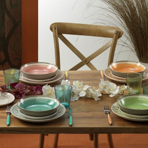 Il servizio 18 pezzi Cape Town in stoneware è un esplosione di colori e fantasie, decori trendy per una tavola d'impatto. Il servizio è composto da 6 piatti piani cm 27, 6 piatti fondi cm 20 e 6 piatti dessert cm 19.