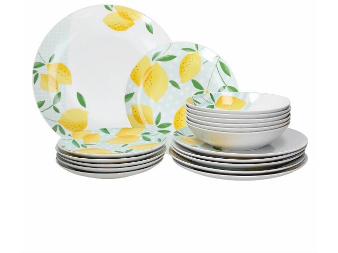 Il servizio piatti da 18 pezzi Panarea fa parte di una collezione completa di accessori del marchio Tognana in pieno mood estivo Siciliano. Il limone, con il suo colore giallo e solare, rappresenta l'elemento distintivo per questo servizio piatti in porcellana bianca con decorazioni assortite in azzurro chiaro. Composto da 6 piatti piani, 6 piatti fondi, 6 piatti dessert, e abbinabile agli altri accessori della linea per portare in tavola l'estate e lo stile ispirato alla calda isola italiana, il servizio piatti Panarea è lavabile in lavastoviglie ed è idoneo all'utilizzo in microonde.